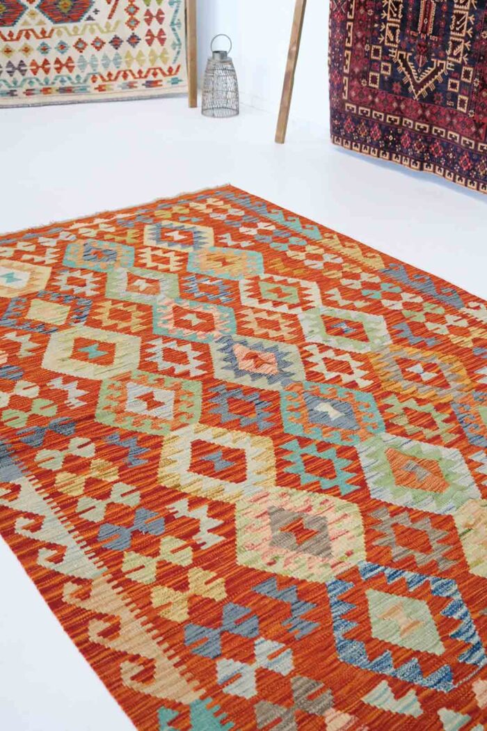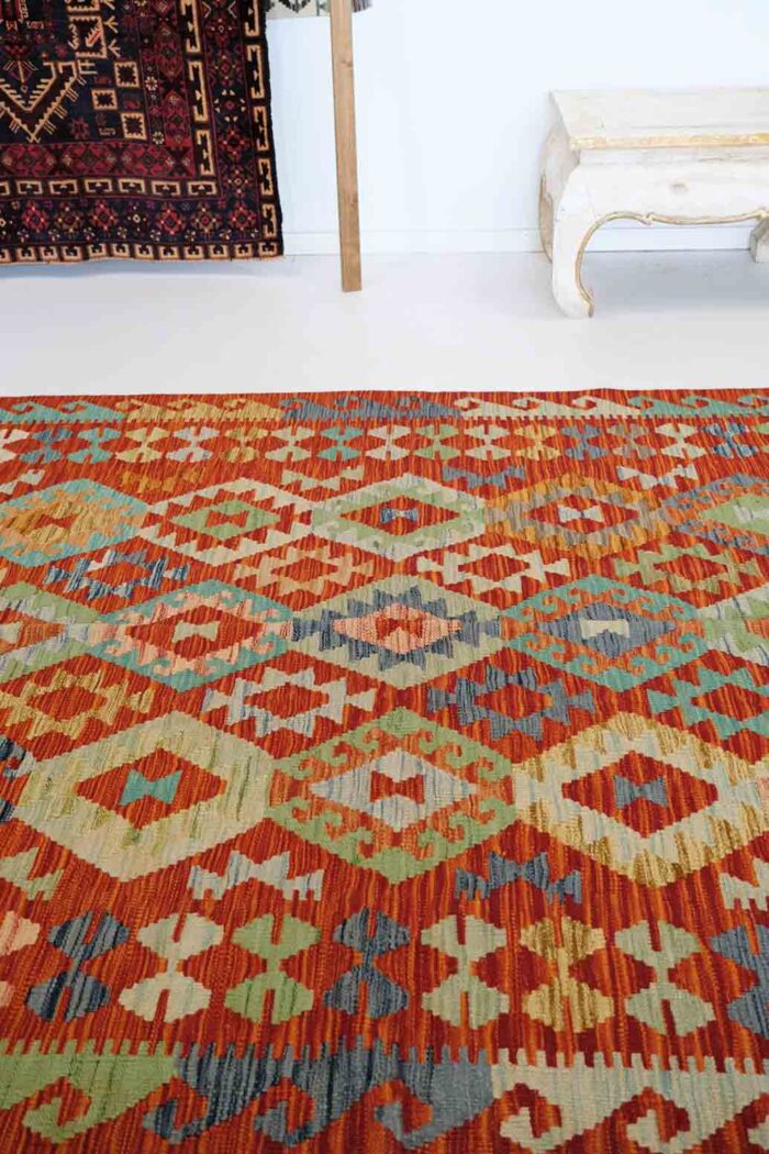 Disse teppene har både estetisk og kulturell betydning og brukes ofte som gulvtepper, veggtepper eller putetrekk. Kelimer har blitt populære internasjonalt, og hvert stykke er unikt, håndlaget med en teknikk som er blitt overlevert gjennom generasjoner. Dette gjør afghanske kelimer til både vakre og meningsfulle kunstverk.Disse kelimene blir håndvevd av nomadestammer i nord Afghanistan. Mønstrene er geometriske med fine og duse naturfarger som går i jordfarger.