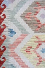 Fargene i afghanske kelimer er ofte naturlige og jordnære, med toner av rød, blå, brun og krem, som reflekterer Afghanistans landskap. Mange kelimer er farget med naturlige pigmenter fra planter og mineraler, som gir teppene en autentisk og varig skjønnhet.