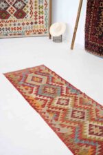 Fargene i afghanske kelimer er ofte naturlige og jordnære, med toner av rød, blå, brun og krem, som reflekterer Afghanistans landskap. Mange kelimer er farget med naturlige pigmenter fra planter og mineraler, som gir teppene en autentisk og varig skjønnhet.