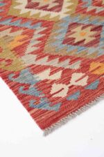 Afghanske kelimer er tradisjonelle håndvevde tepper fra Afghanistan, kjennetegnet ved sine livlige geometriske mønstre og farger. De er laget med flate vevteknikker, uten luv, som gir en glatt, slitesterk overflate. I motsetning til persiske tepper, som ofte har detaljerte blomsterdesign, har afghanske kelimer et mer rustikt og geometrisk utseende, inspirert av det nomadiske livet og de omkringliggende landskapene.