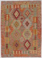 Afghanske kelimer er tradisjonelle håndvevde tepper fra Afghanistan, kjennetegnet ved sine livlige geometriske mønstre og farger. De er laget med flate vevteknikker, uten luv, som gir en glatt, slitesterk overflate. I motsetning til persiske tepper, som ofte har detaljerte blomsterdesign, har afghanske kelimer et mer rustikt og geometrisk utseende, inspirert av det nomadiske livet og de omkringliggende landskapene.