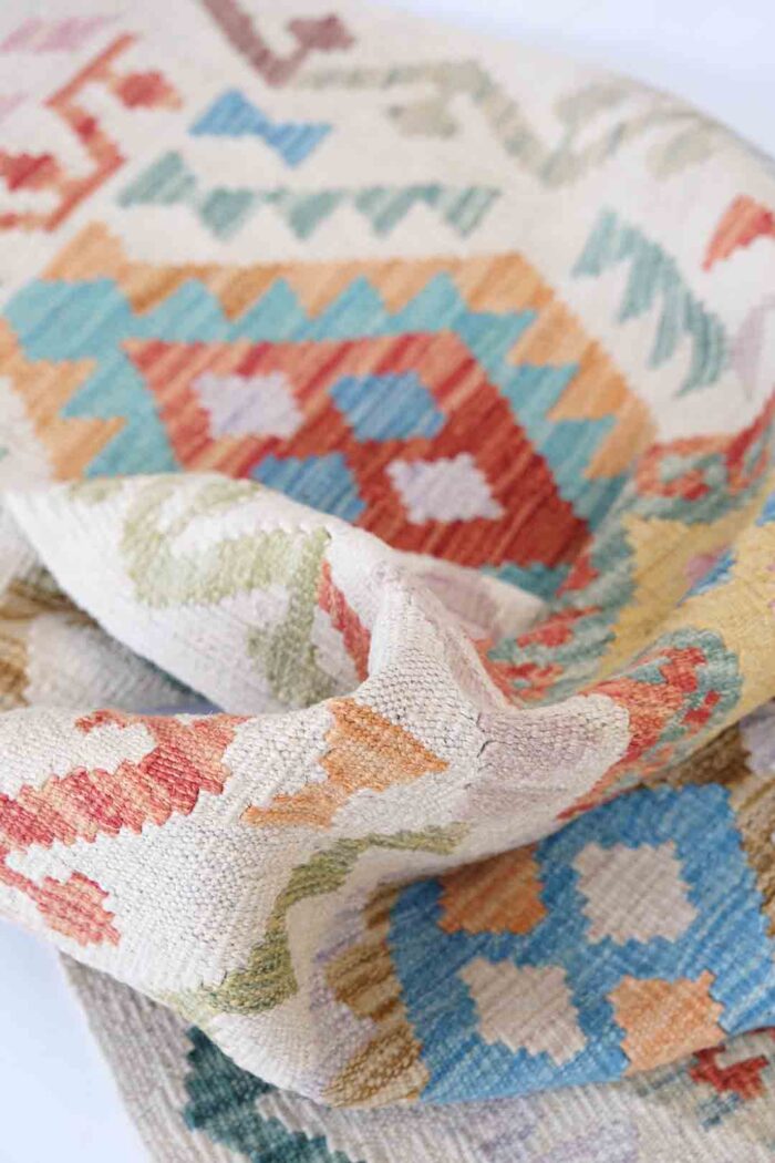 Disse teppene har både estetisk og kulturell betydning og brukes ofte som gulvtepper, veggtepper eller putetrekk. Kelimer har blitt populære internasjonalt, og hvert stykke er unikt, håndlaget med en teknikk som er blitt overlevert gjennom generasjoner. Dette gjør afghanske kelimer til både vakre og meningsfulle kunstverk.Disse kelimene blir håndvevd av nomadestammer i nord Afghanistan. Mønstrene er geometriske med fine og duse naturfarger som går i jordfarger.