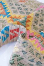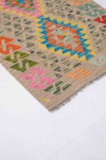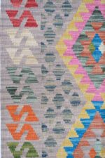Fargene i afghanske kelimer er ofte naturlige og jordnære, med toner av rød, blå, brun og krem, som reflekterer Afghanistans landskap. Mange kelimer er farget med naturlige pigmenter fra planter og mineraler, som gir teppene en autentisk og varig skjønnhet.