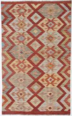 Afghanske kelimer er tradisjonelle håndvevde tepper fra Afghanistan, kjennetegnet ved sine livlige geometriske mønstre og farger. De er laget med flate vevteknikker, uten luv, som gir en glatt, slitesterk overflate. I motsetning til persiske tepper, som ofte har detaljerte blomsterdesign, har afghanske kelimer et mer rustikt og geometrisk utseende, inspirert av det nomadiske livet og de omkringliggende landskapene.