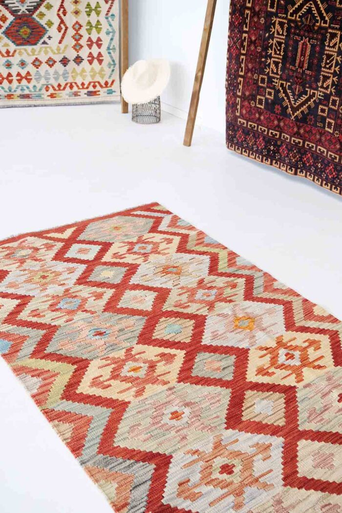 Disse teppene har både estetisk og kulturell betydning og brukes ofte som gulvtepper, veggtepper eller putetrekk. Kelimer har blitt populære internasjonalt, og hvert stykke er unikt, håndlaget med en teknikk som er blitt overlevert gjennom generasjoner. Dette gjør afghanske kelimer til både vakre og meningsfulle kunstverk.Disse kelimene blir håndvevd av nomadestammer i nord Afghanistan. Mønstrene er geometriske med fine og duse naturfarger som går i jordfarger.