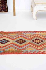 Afghanske kelimer er tradisjonelle håndvevde tepper fra Afghanistan, kjennetegnet ved sine livlige geometriske mønstre og farger. De er laget med flate vevteknikker, uten luv, som gir en glatt, slitesterk overflate. I motsetning til persiske tepper, som ofte har detaljerte blomsterdesign, har afghanske kelimer et mer rustikt og geometrisk utseende, inspirert av det nomadiske livet og de omkringliggende landskapene.