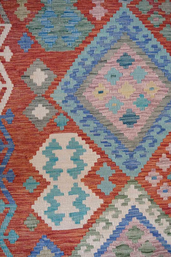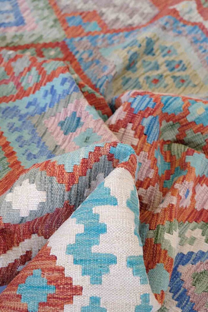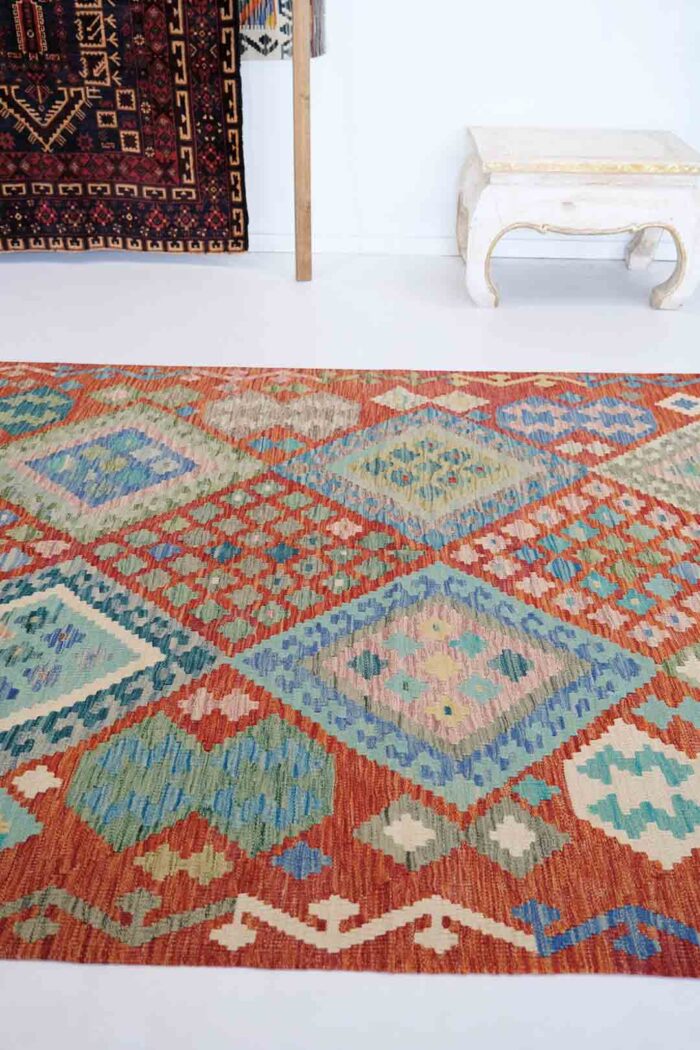 Disse teppene har både estetisk og kulturell betydning og brukes ofte som gulvtepper, veggtepper eller putetrekk. Kelimer har blitt populære internasjonalt, og hvert stykke er unikt, håndlaget med en teknikk som er blitt overlevert gjennom generasjoner. Dette gjør afghanske kelimer til både vakre og meningsfulle kunstverk.Disse kelimene blir håndvevd av nomadestammer i nord Afghanistan. Mønstrene er geometriske med fine og duse naturfarger som går i jordfarger.