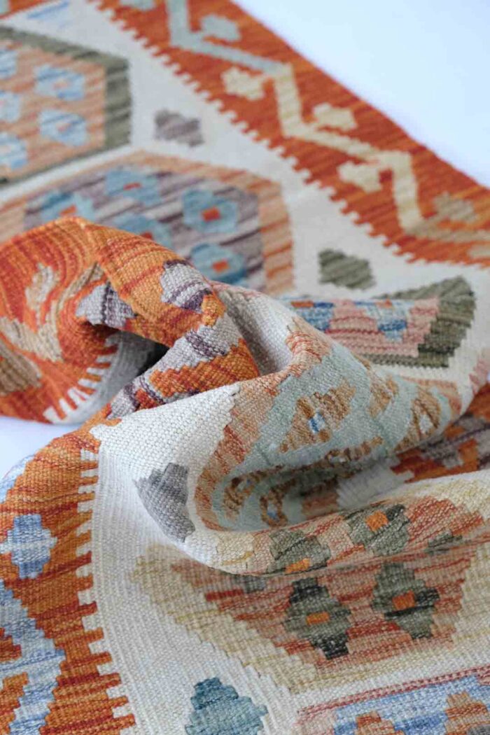 Disse teppene har både estetisk og kulturell betydning og brukes ofte som gulvtepper, veggtepper eller putetrekk. Kelimer har blitt populære internasjonalt, og hvert stykke er unikt, håndlaget med en teknikk som er blitt overlevert gjennom generasjoner. Dette gjør afghanske kelimer til både vakre og meningsfulle kunstverk.Disse kelimene blir håndvevd av nomadestammer i nord Afghanistan. Mønstrene er geometriske med fine og duse naturfarger som går i jordfarger.