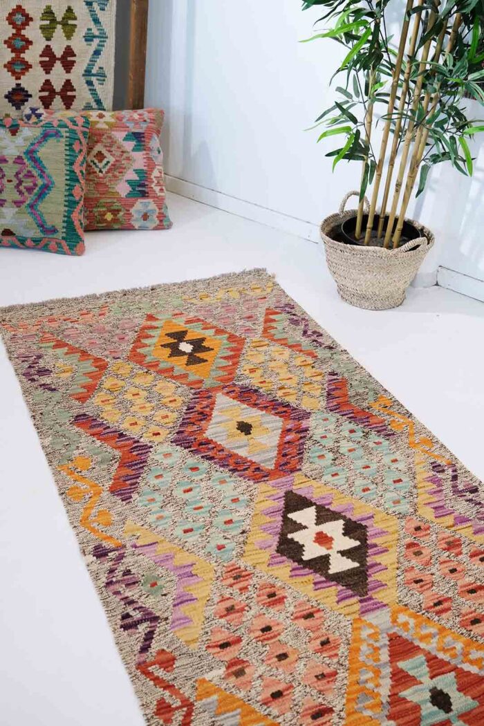 Disse teppene har både estetisk og kulturell betydning og brukes ofte som gulvtepper, veggtepper eller putetrekk. Kelimer har blitt populære internasjonalt, og hvert stykke er unikt, håndlaget med en teknikk som er blitt overlevert gjennom generasjoner. Dette gjør afghanske kelimer til både vakre og meningsfulle kunstverk.Disse kelimene blir håndvevd av nomadestammer i nord Afghanistan. Mønstrene er geometriske med fine og duse naturfarger som går i jordfarger.