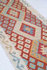 Fargene i afghanske kelimer er ofte naturlige og jordnære, med toner av rød, blå, brun og krem, som reflekterer Afghanistans landskap. Mange kelimer er farget med naturlige pigmenter fra planter og mineraler, som gir teppene en autentisk og varig skjønnhet.