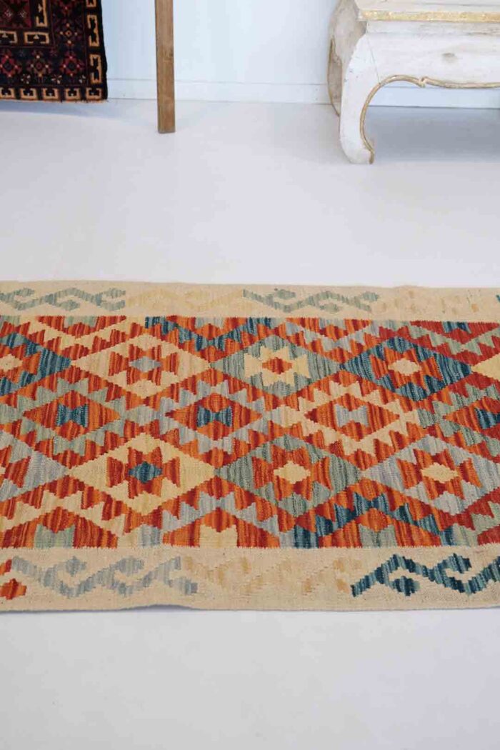 Disse teppene har både estetisk og kulturell betydning og brukes ofte som gulvtepper, veggtepper eller putetrekk. Kelimer har blitt populære internasjonalt, og hvert stykke er unikt, håndlaget med en teknikk som er blitt overlevert gjennom generasjoner. Dette gjør afghanske kelimer til både vakre og meningsfulle kunstverk.Disse kelimene blir håndvevd av nomadestammer i nord Afghanistan. Mønstrene er geometriske med fine og duse naturfarger som går i jordfarger.