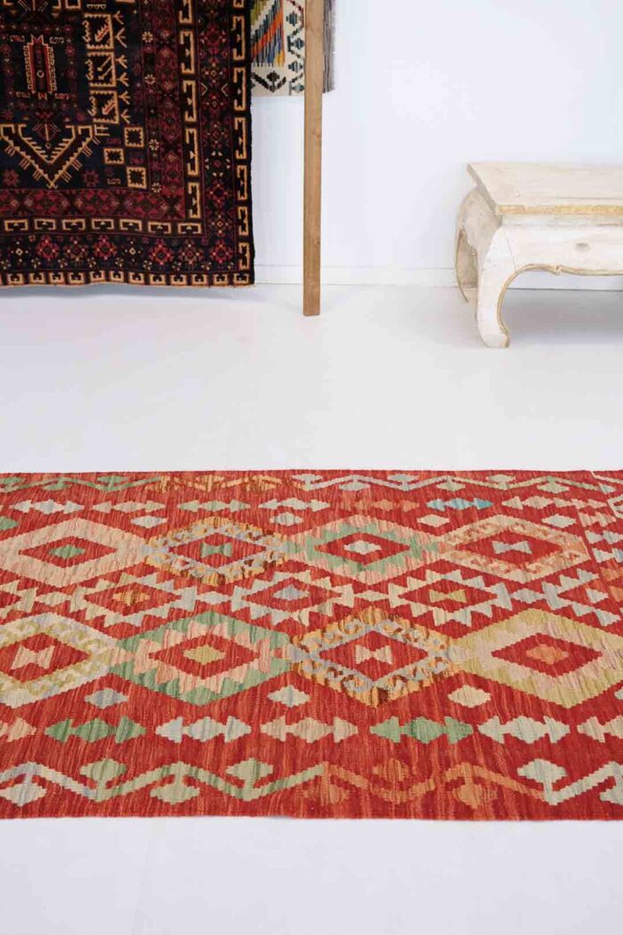 Disse teppene har både estetisk og kulturell betydning og brukes ofte som gulvtepper, veggtepper eller putetrekk. Kelimer har blitt populære internasjonalt, og hvert stykke er unikt, håndlaget med en teknikk som er blitt overlevert gjennom generasjoner. Dette gjør afghanske kelimer til både vakre og meningsfulle kunstverk.Disse kelimene blir håndvevd av nomadestammer i nord Afghanistan. Mønstrene er geometriske med fine og duse naturfarger som går i jordfarger.