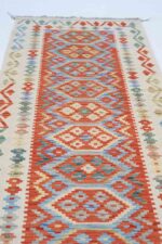 Afghanske kelimer er tradisjonelle håndvevde tepper fra Afghanistan, kjennetegnet ved sine livlige geometriske mønstre og farger. De er laget med flate vevteknikker, uten luv, som gir en glatt, slitesterk overflate. I motsetning til persiske tepper, som ofte har detaljerte blomsterdesign, har afghanske kelimer et mer rustikt og geometrisk utseende, inspirert av det nomadiske livet og de omkringliggende landskapene.