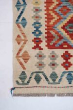 Fargene i afghanske kelimer er ofte naturlige og jordnære, med toner av rød, blå, brun og krem, som reflekterer Afghanistans landskap. Mange kelimer er farget med naturlige pigmenter fra planter og mineraler, som gir teppene en autentisk og varig skjønnhet.