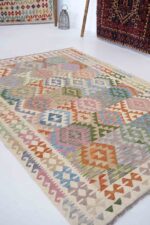Fargene i afghanske kelimer er ofte naturlige og jordnære, med toner av rød, blå, brun og krem, som reflekterer Afghanistans landskap. Mange kelimer er farget med naturlige pigmenter fra planter og mineraler, som gir teppene en autentisk og varig skjønnhet.