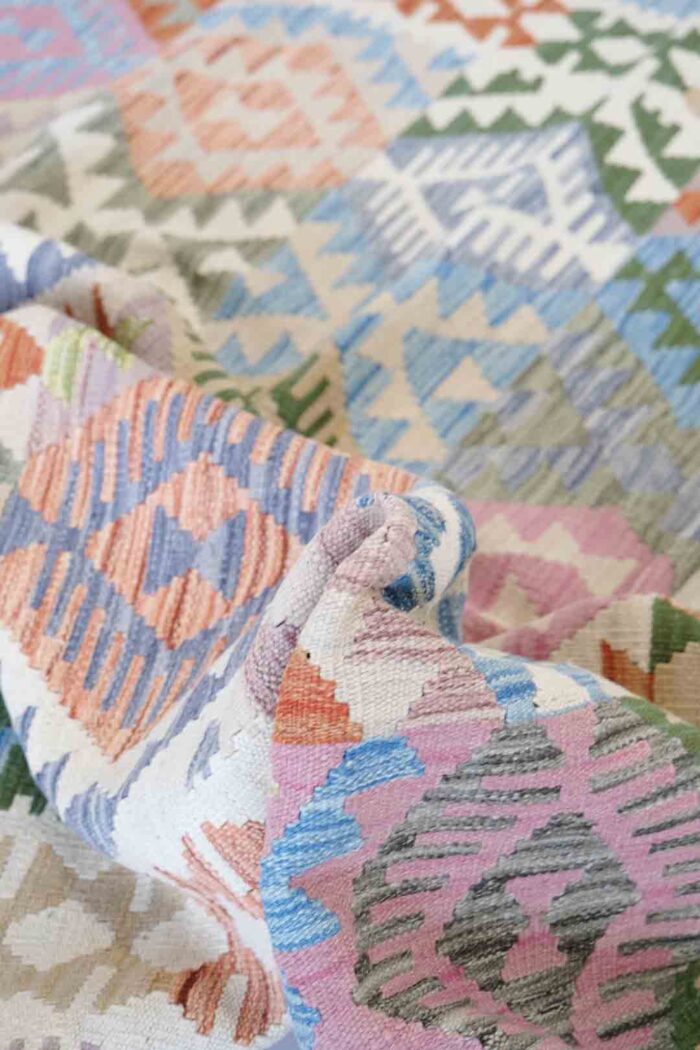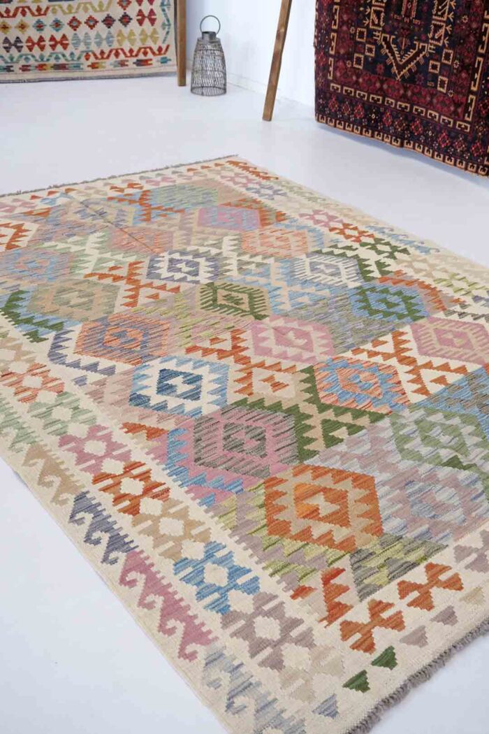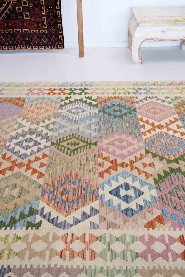 Disse teppene har både estetisk og kulturell betydning og brukes ofte som gulvtepper, veggtepper eller putetrekk. Kelimer har blitt populære internasjonalt, og hvert stykke er unikt, håndlaget med en teknikk som er blitt overlevert gjennom generasjoner. Dette gjør afghanske kelimer til både vakre og meningsfulle kunstverk.Disse kelimene blir håndvevd av nomadestammer i nord Afghanistan. Mønstrene er geometriske med fine og duse naturfarger som går i jordfarger.