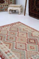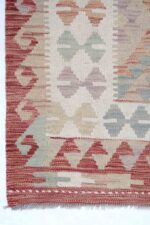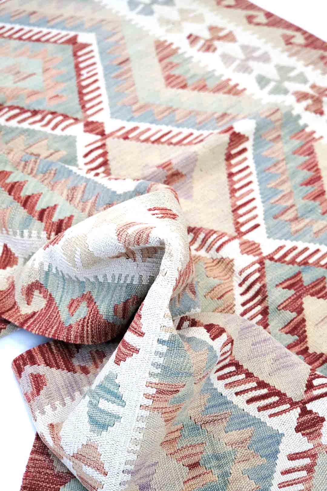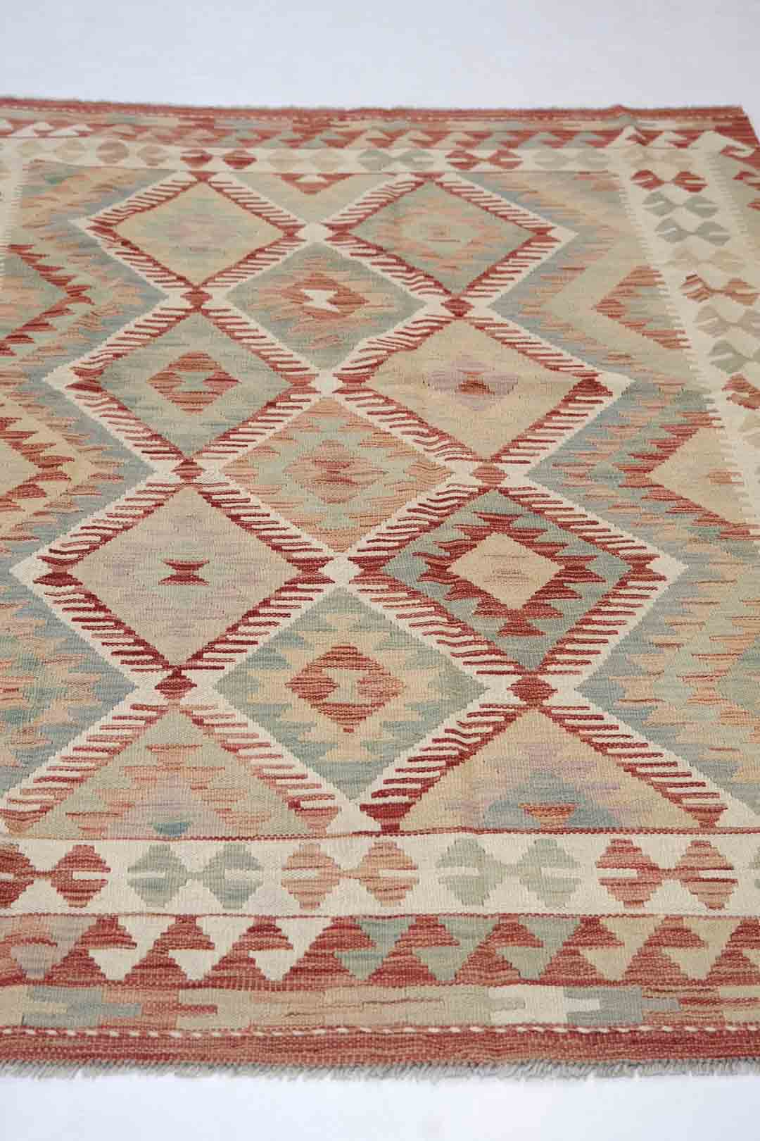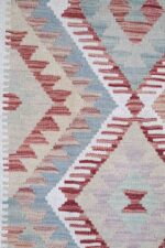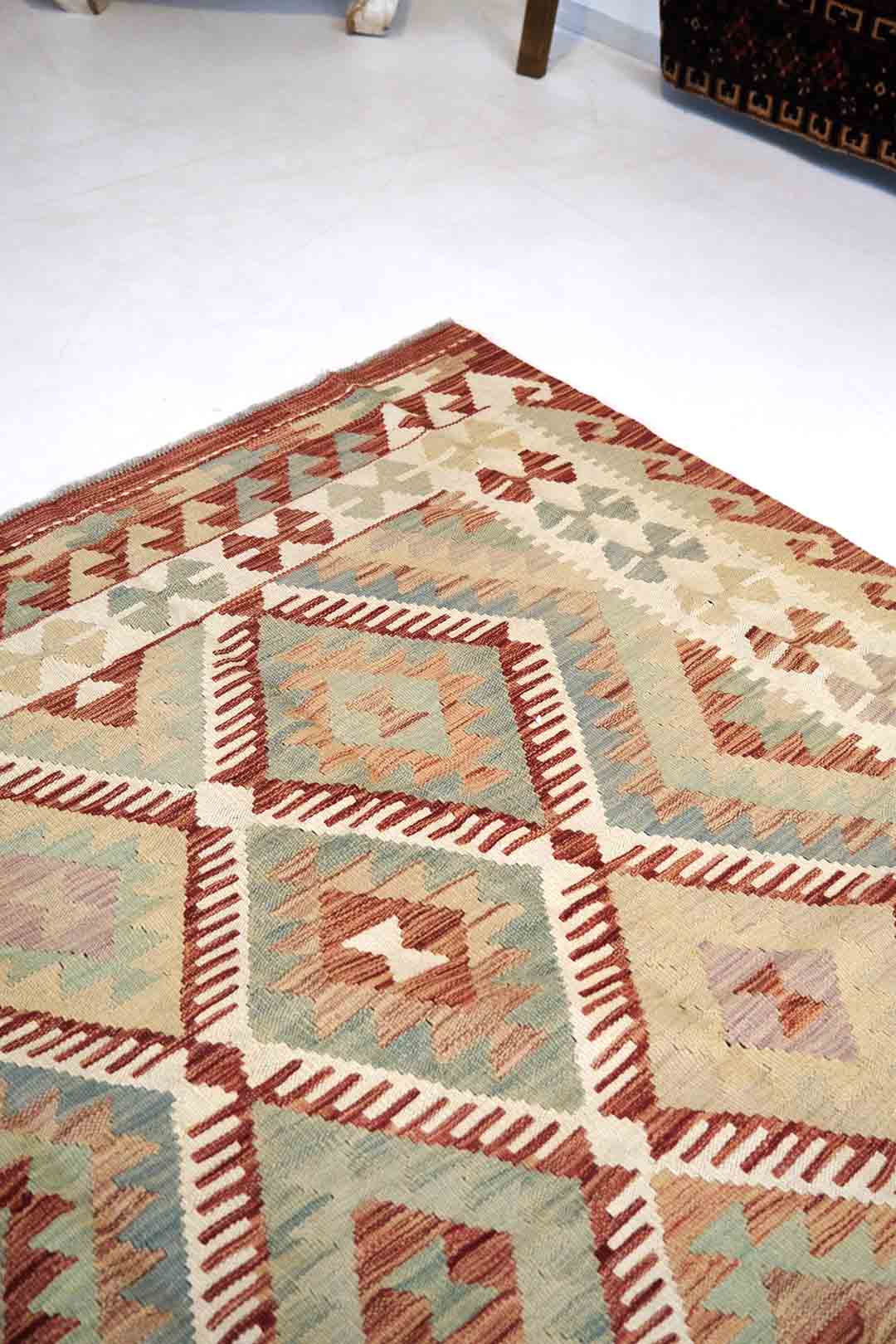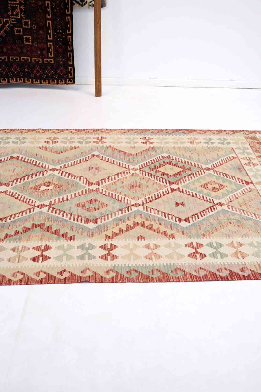 Denne kelimen er vevd i maymaneh distriktet i nord Afghanestan av håndspunnet og plantefarget ull.