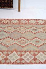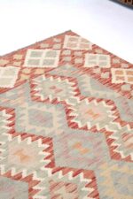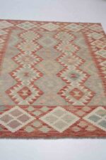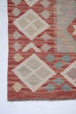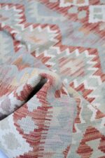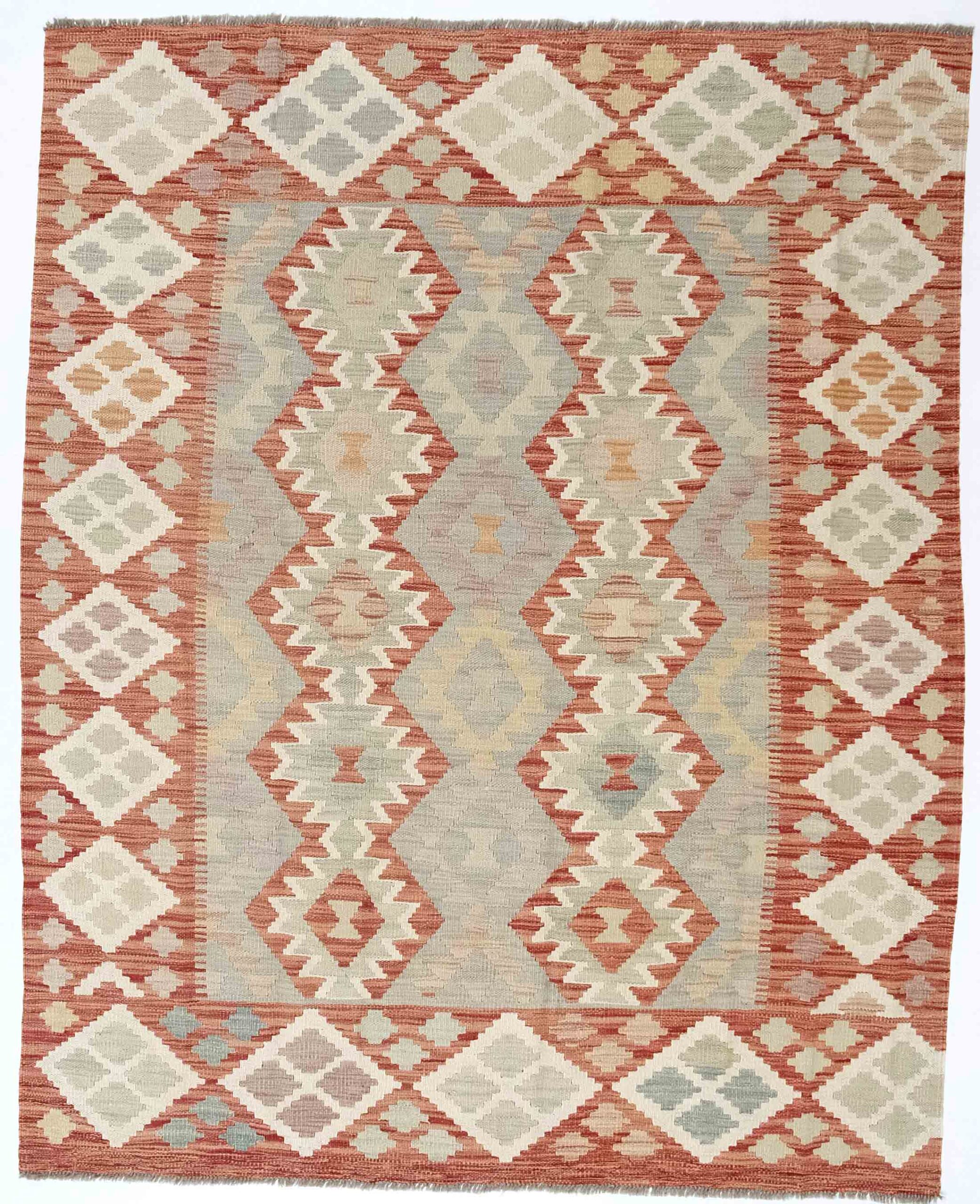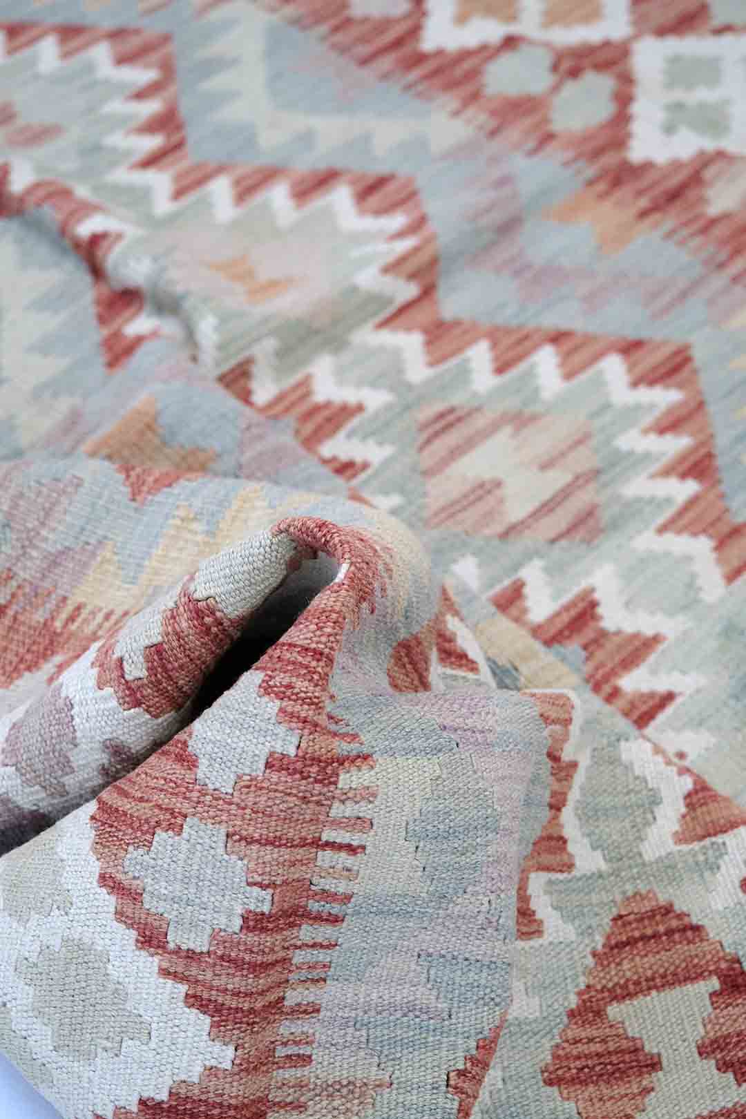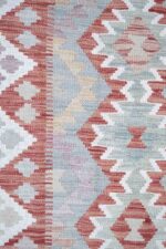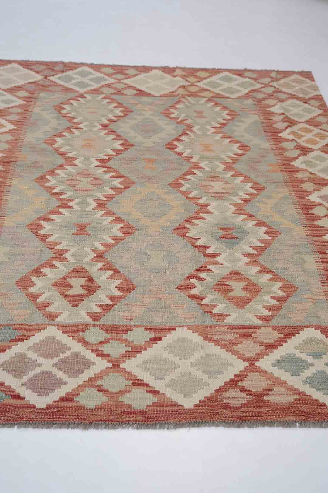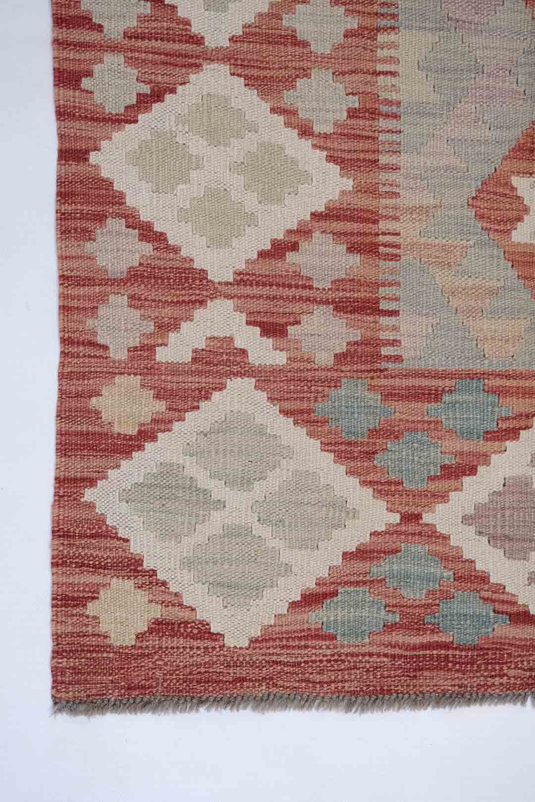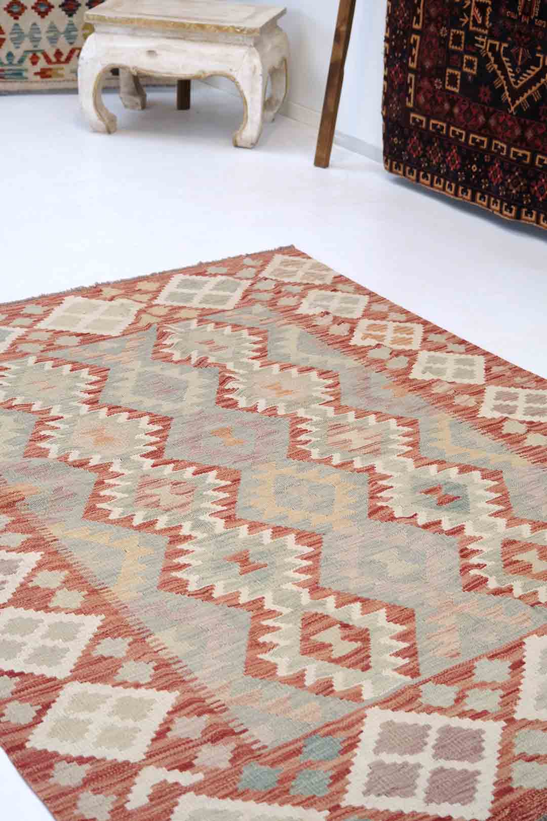 Denne kelimen er vevd i maymaneh distriktet i nord Afghanestan av håndspunnet og plantefarget ull.