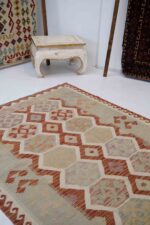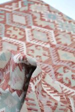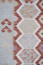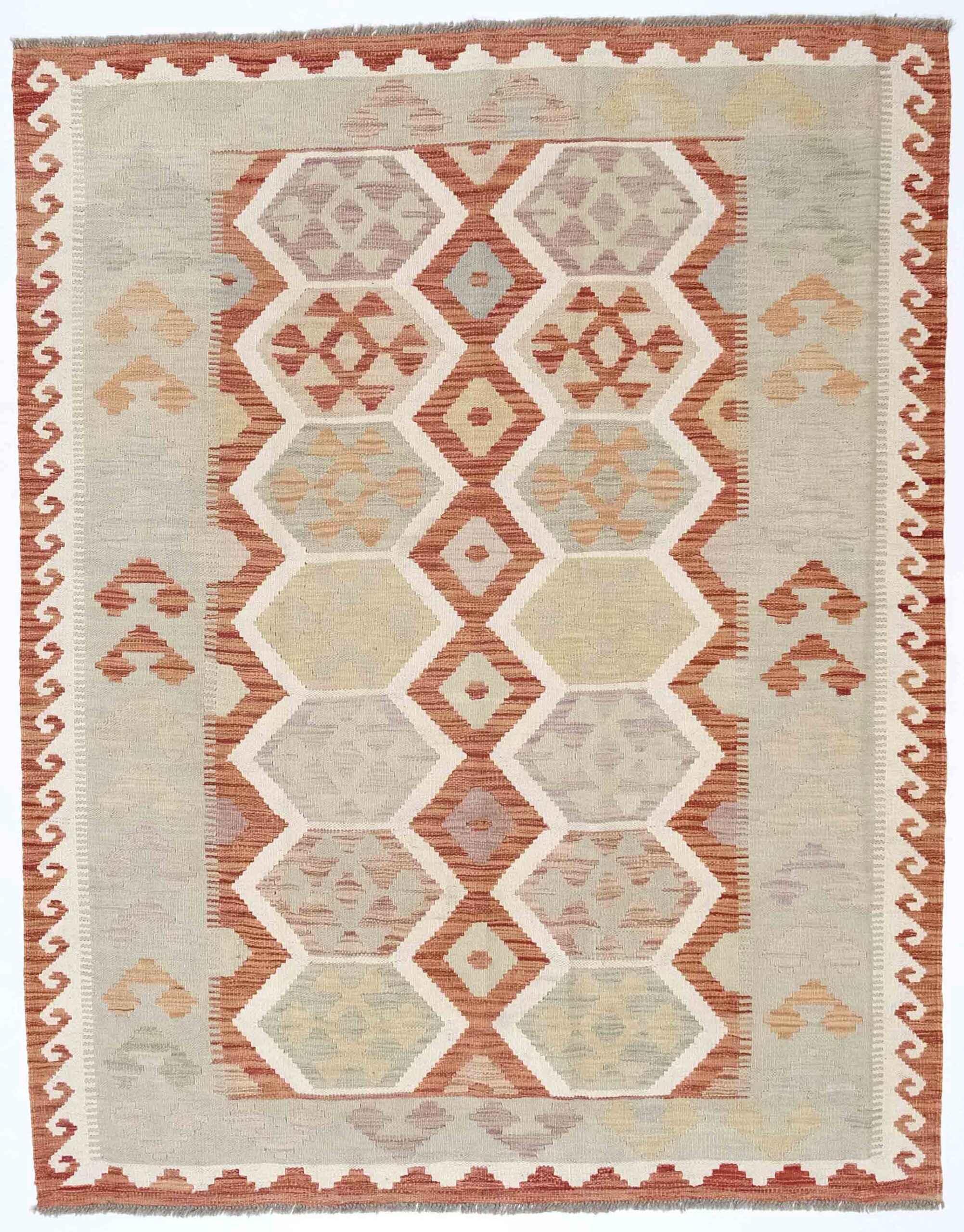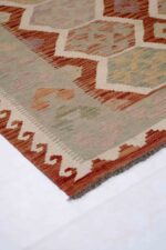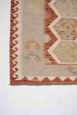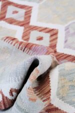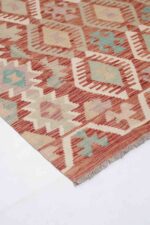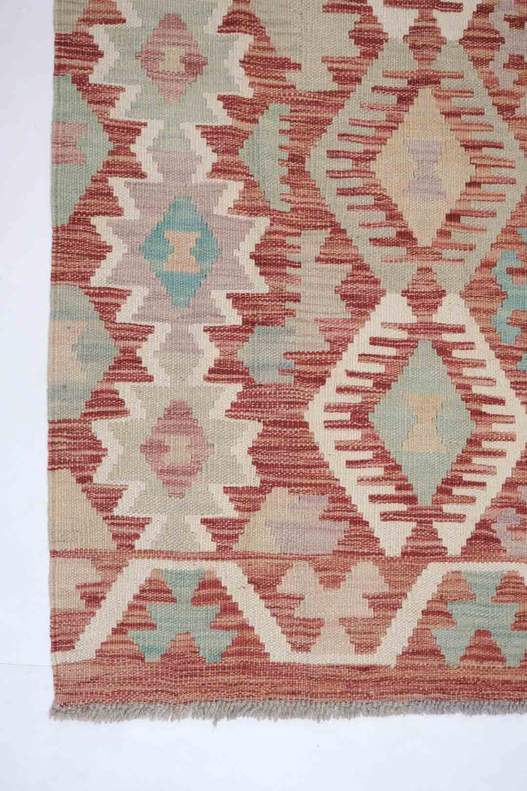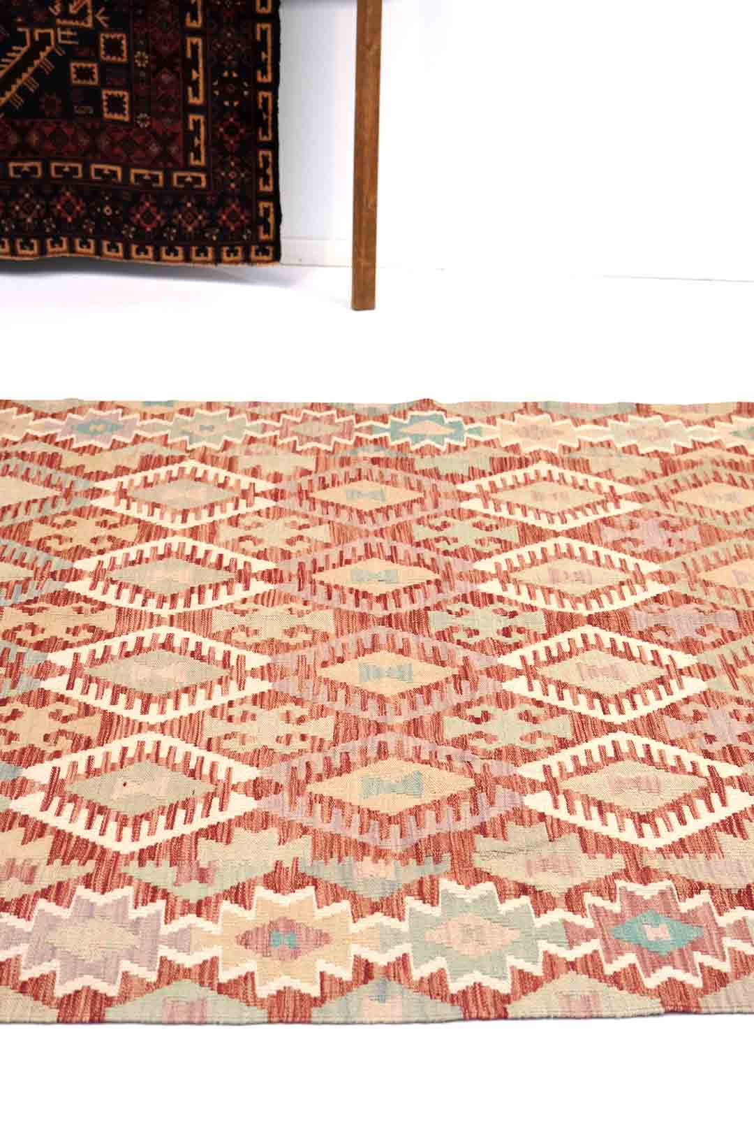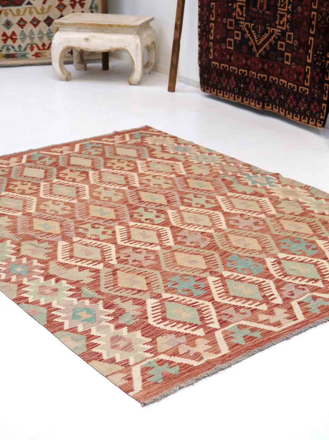 Denne kelimen er vevd i maymaneh distriktet i nord Afghanestan av håndspunnet og plantefarget ull.