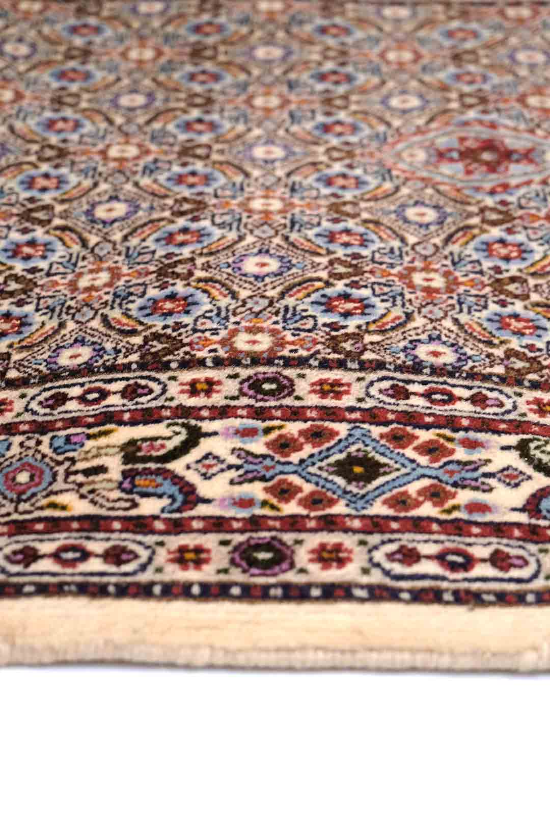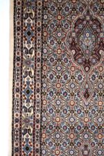 Mønstret er enten Herati mønster med eller uten medalliong eller Hagemønstret. Det fremkommer ofte silkeinnslag i mønstret for å fremheve detaljene.