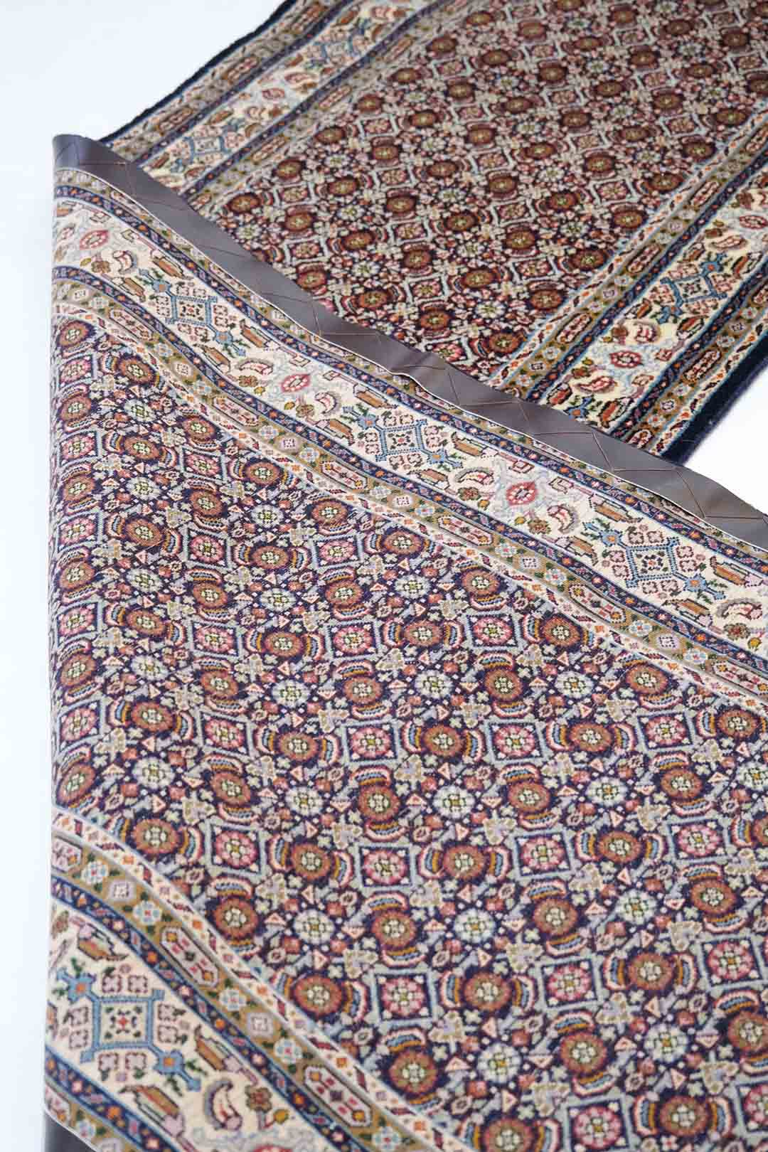 Mønstret er enten Herati mønster med eller uten medalliong eller Hagemønstret. Det fremkommer ofte silkeinnslag i mønstret for å fremheve detaljene.