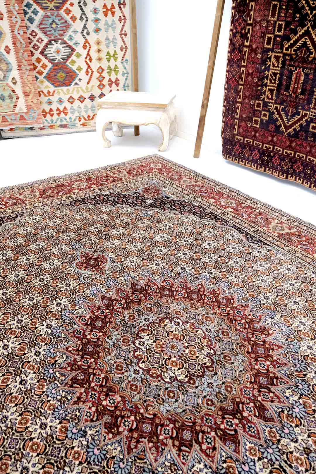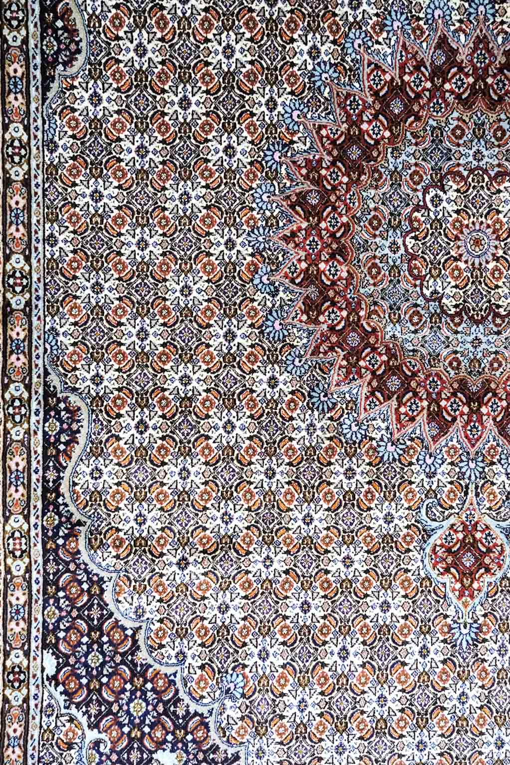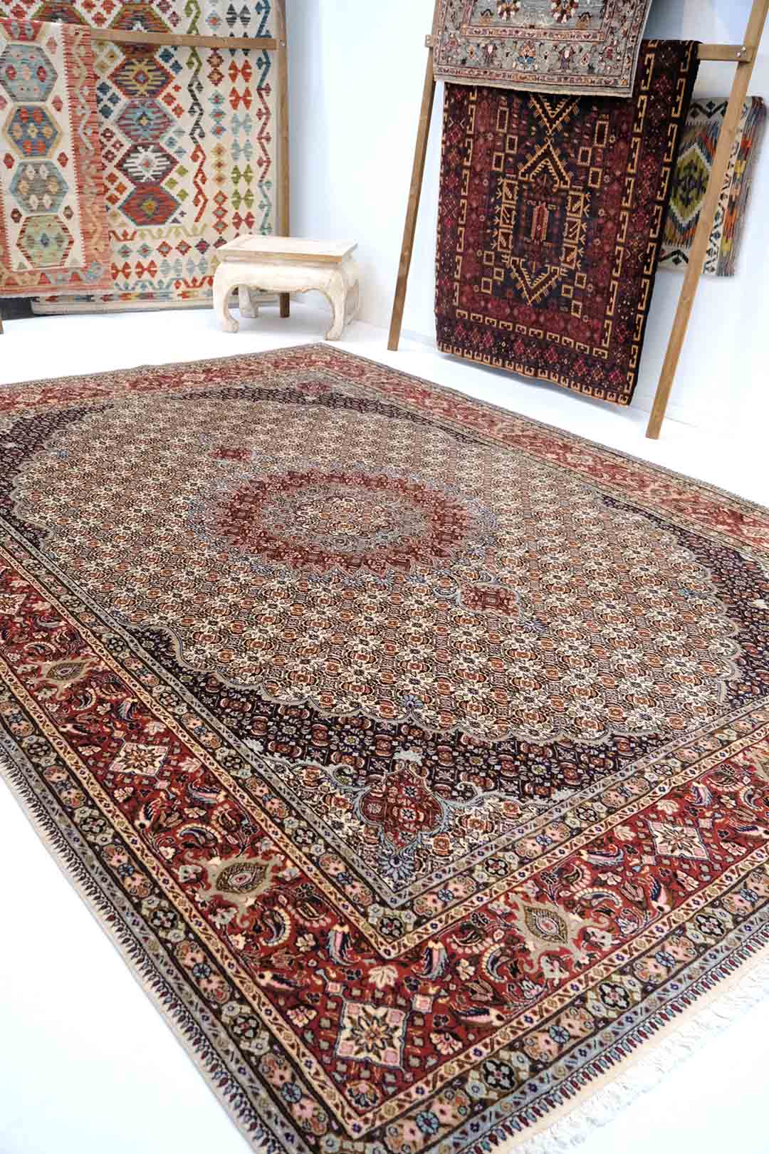 Teppene er laget av god ull kvalitet og for det meste på bommullsrenning.De bruker «dobellknuter».