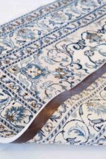Dette er et kraftig og slitesterkt teppe fra byen Nain Kashmar med ull på bommullsrenning.