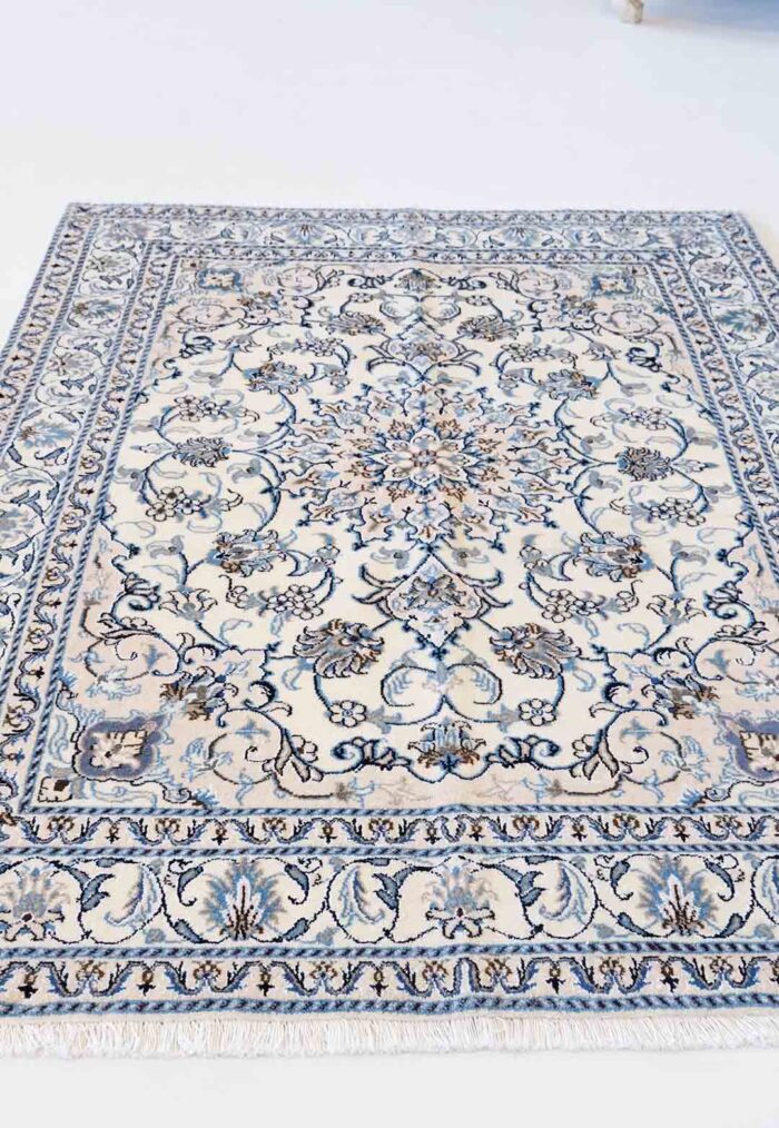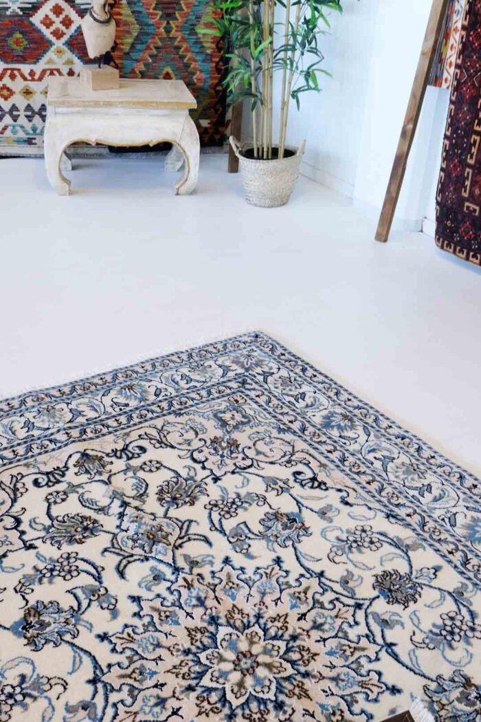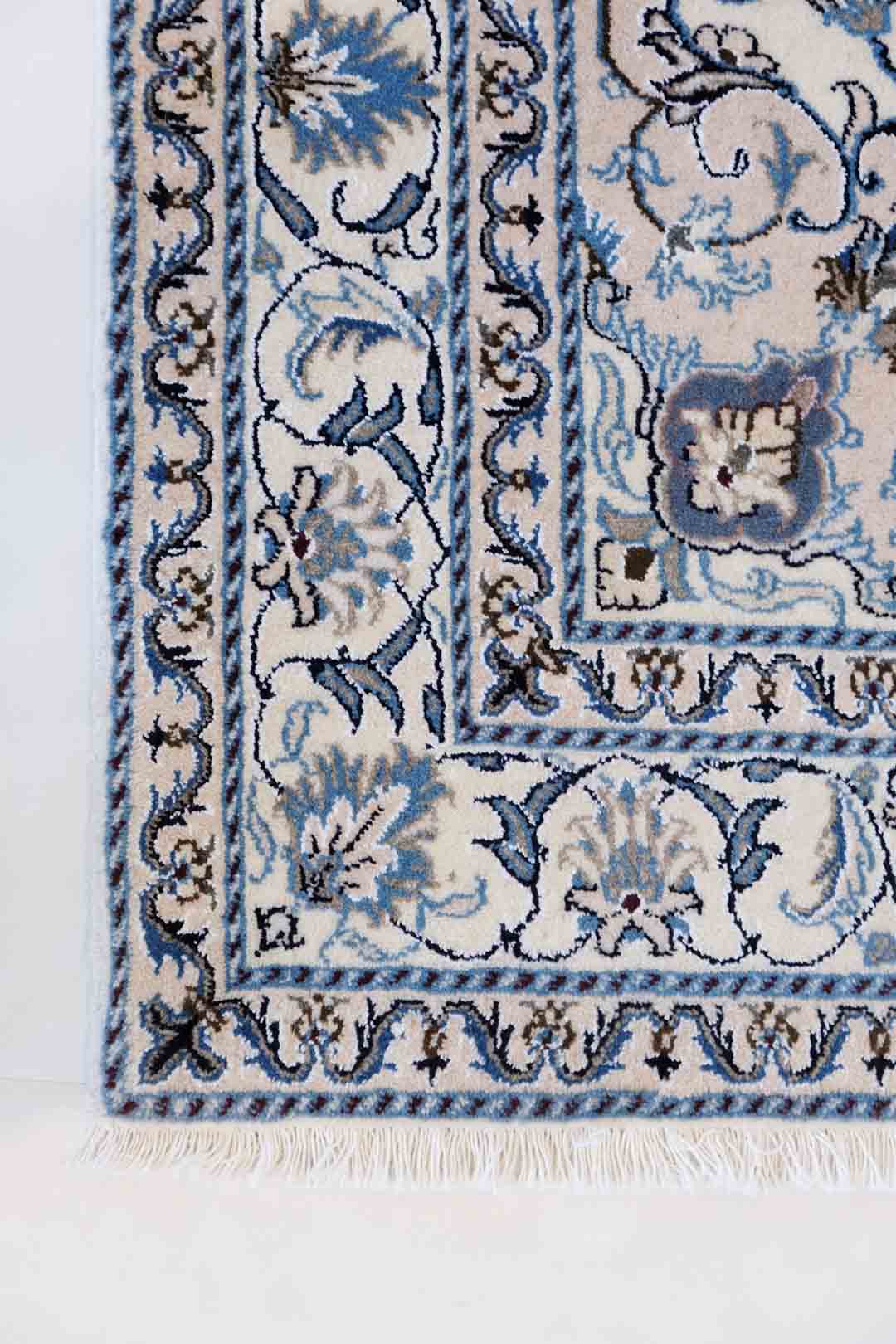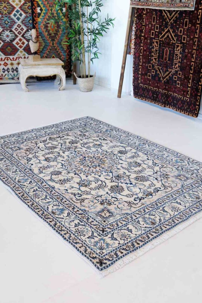 Dette er et kraftig og slitesterkt teppe fra byen Nain Kashmar med ull på bommullsrenning.