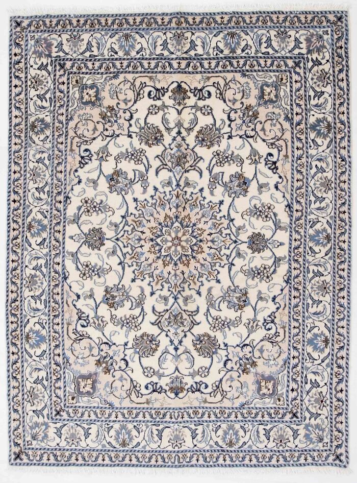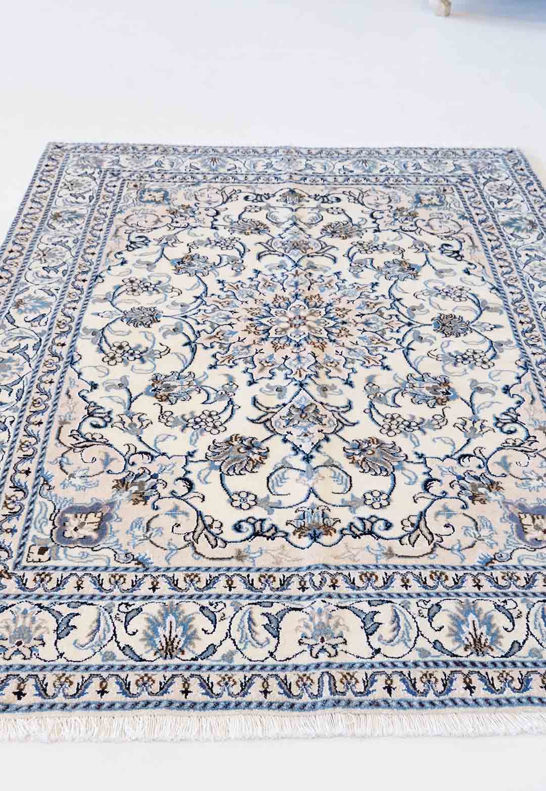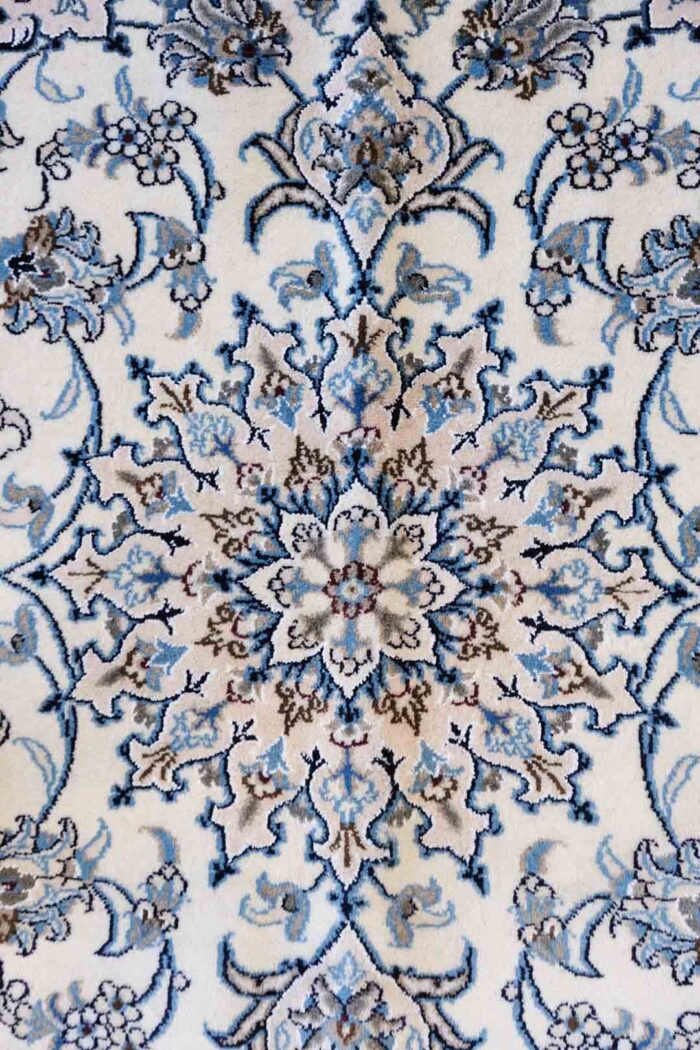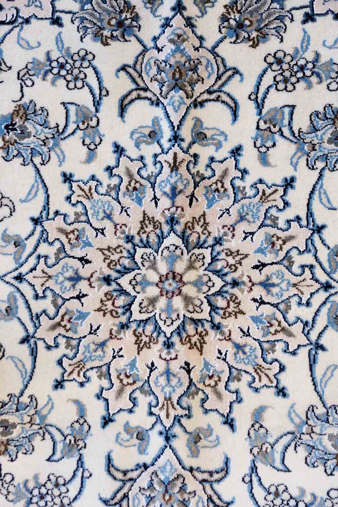 Dette er et kraftig og slitesterkt teppe fra byen Nain Kashmar med ull på bommullsrenning.