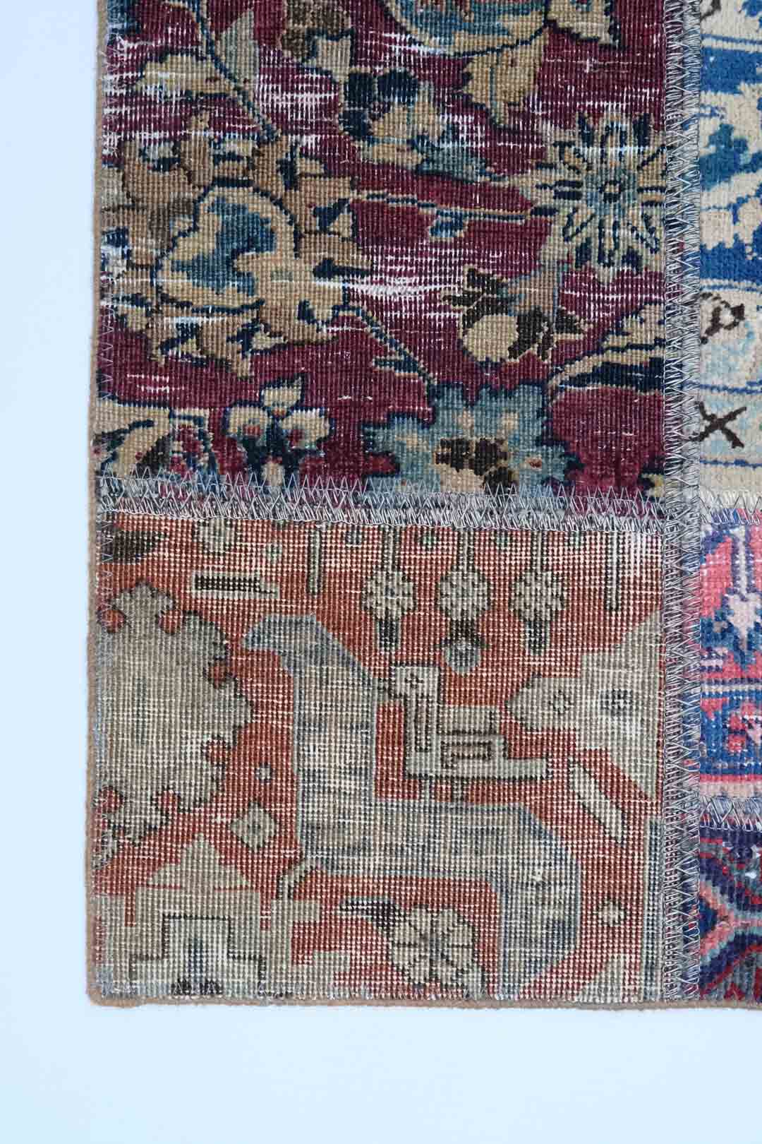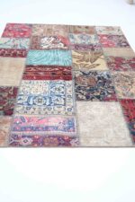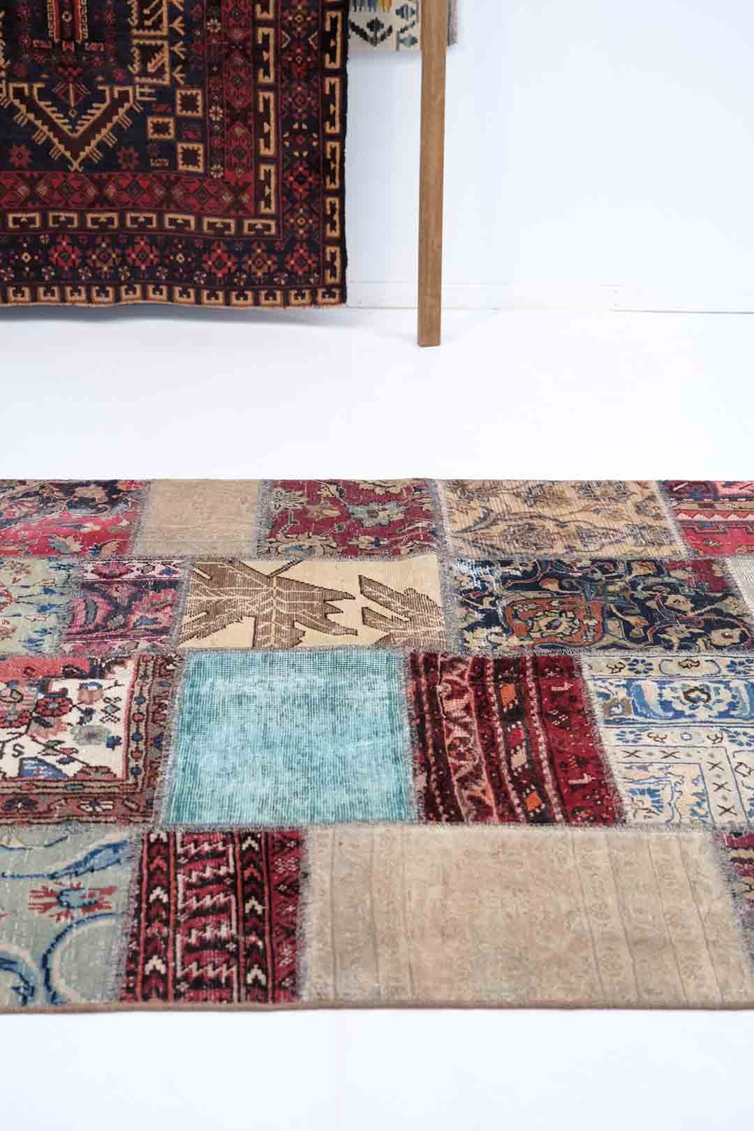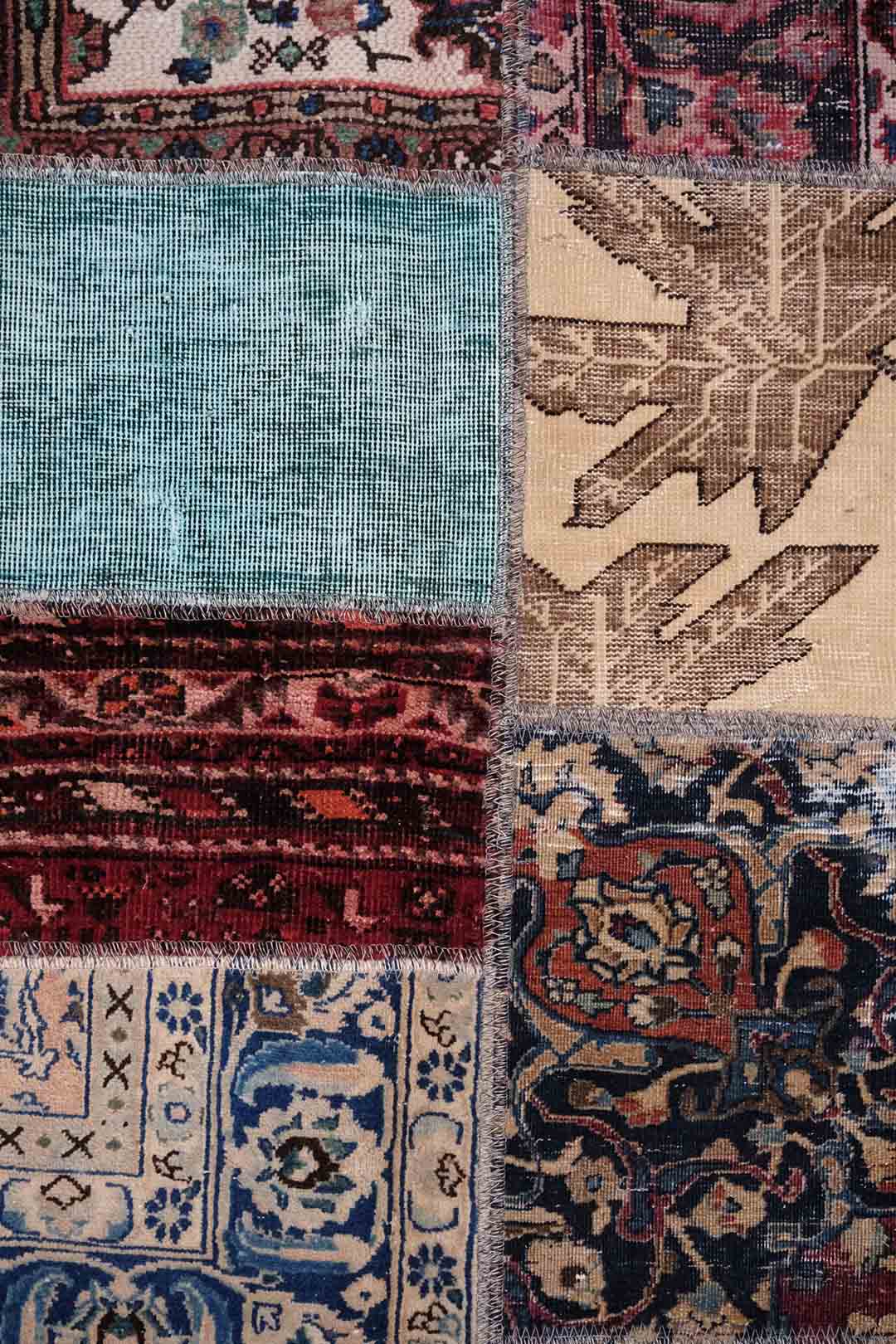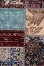 Persiske patchwork-tepper er unike kunstverk laget av biter av eldre, håndknyttede tepper som settes sammen til ett nytt, harmonisk design. Disse teppene kombinerer tradisjonell persisk håndverk med moderne estetikk, og hvert teppe blir et enestående uttrykk for historie og kultur. Materialene er ofte ull eller silke, og de originale teppene kan være flere tiår gamle, noen ganger til og med antikke.