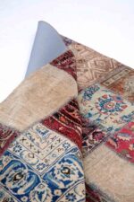 Hver lapp i teppet bærer på sin egen fortelling, med mønstre og farger som reflekterer ulike regioner og epoker i Iran. Ved å gjenbruke og redesigne disse fragmentene, får de nytt liv i form av et patchwork-teppe – et bærekraftig alternativ som også bevarer kulturarv. Sluttresultatet er et fargerikt og karakterfullt teppe med sjel, perfekt for moderne hjem som ønsker en unik touch med historisk dybde og kunstnerisk verdi.11