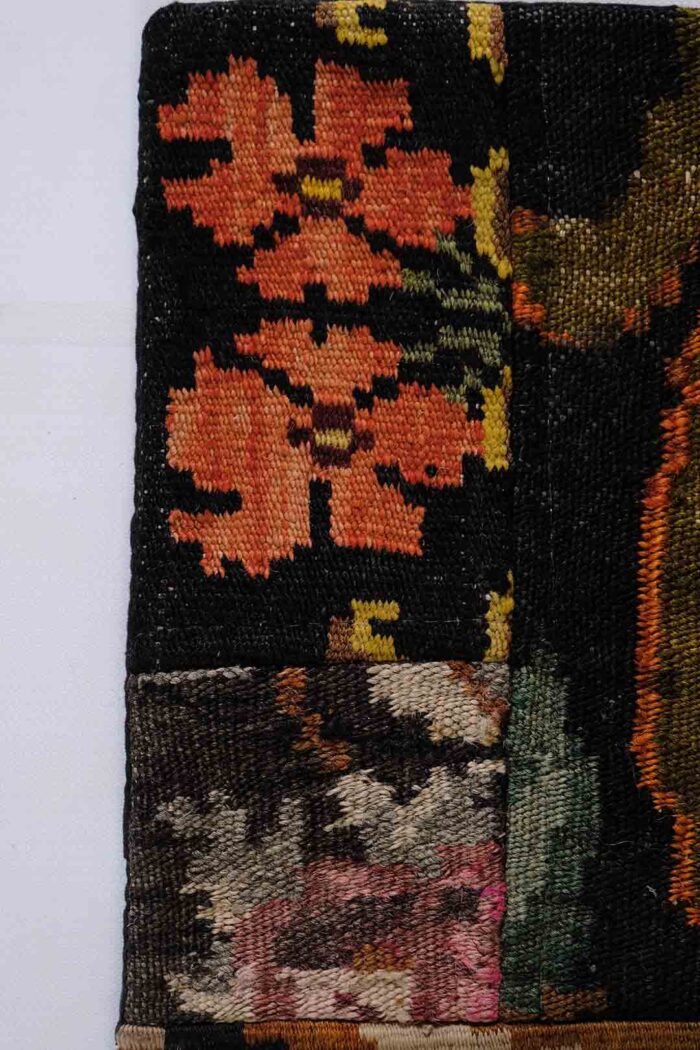 Dette er et rosekelim pute laget av gamle rosekelimer fra Moldova. Det er ull på ull renning , ullen er plante farget og håndspunnet.